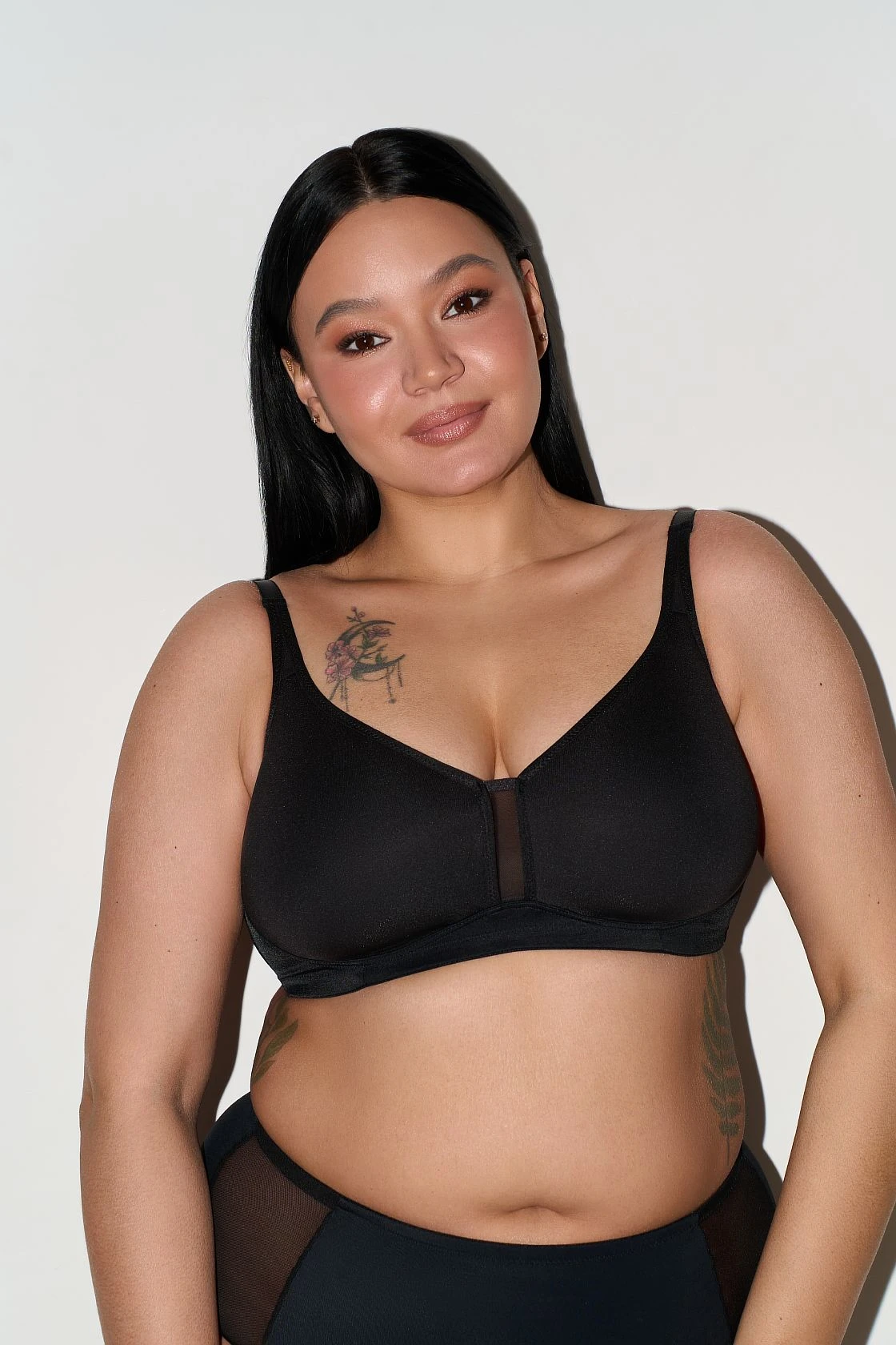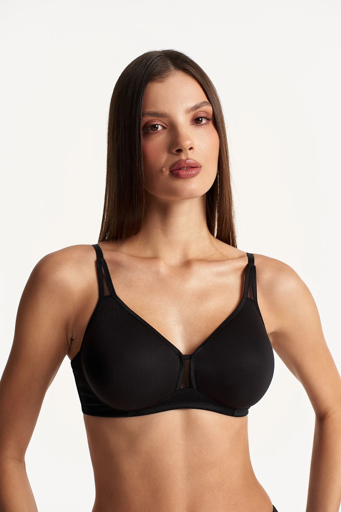 Бюстгальтер из полотна спейсер без каркасов. Полотно спейсер позволяет хорошо отводить влагу и создает идеальный баланс терморегуляции, что крайне важно для женской груди в любой сезон и в любое время дня.