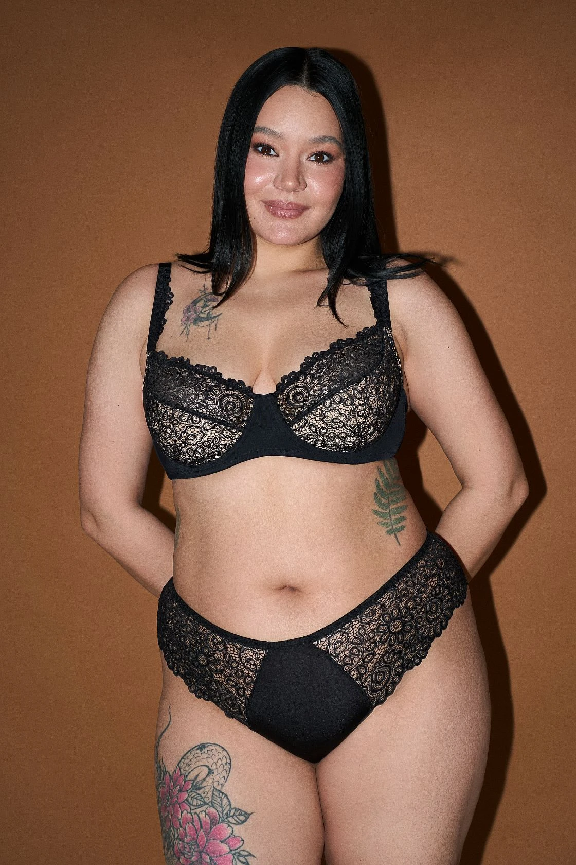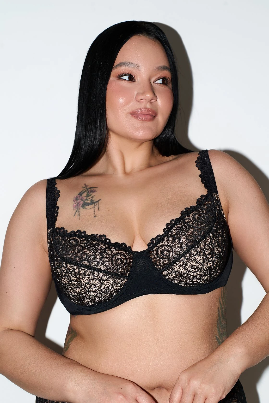 - внутрення сторона из хлопка в нижней части чашки, в верхней части — из кружева