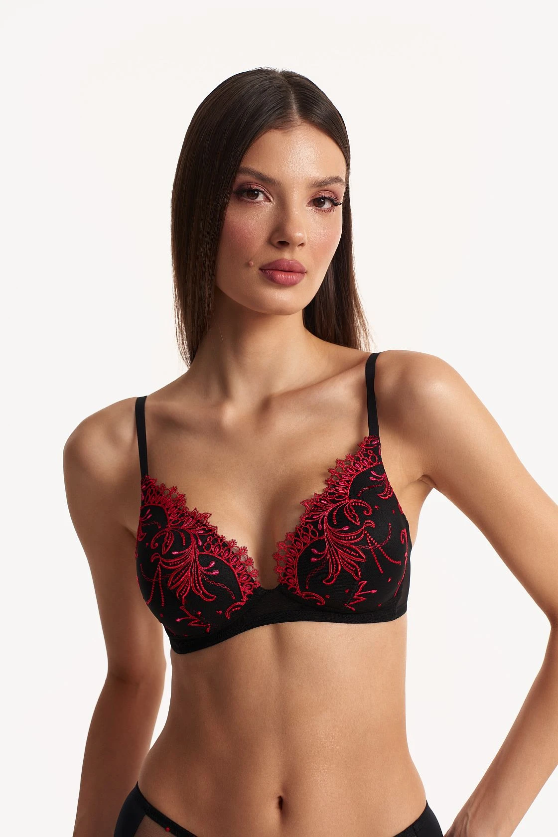 Бескаркасный бюстгальтер с эффектной вышивкой.