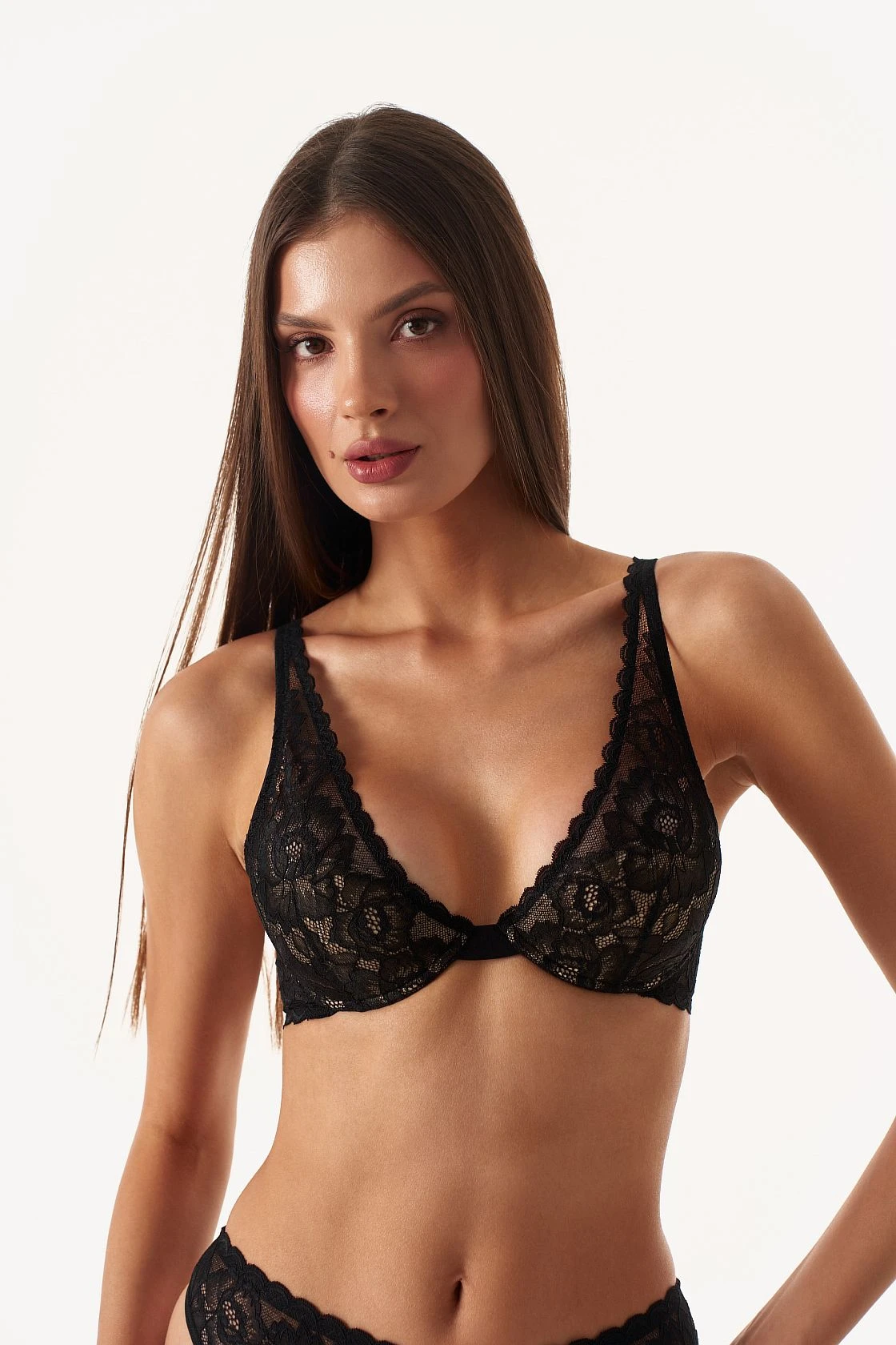Бюстгальтер из нежного кружева. Деликатно поддерживает грудь, подходит для небольшого объема.