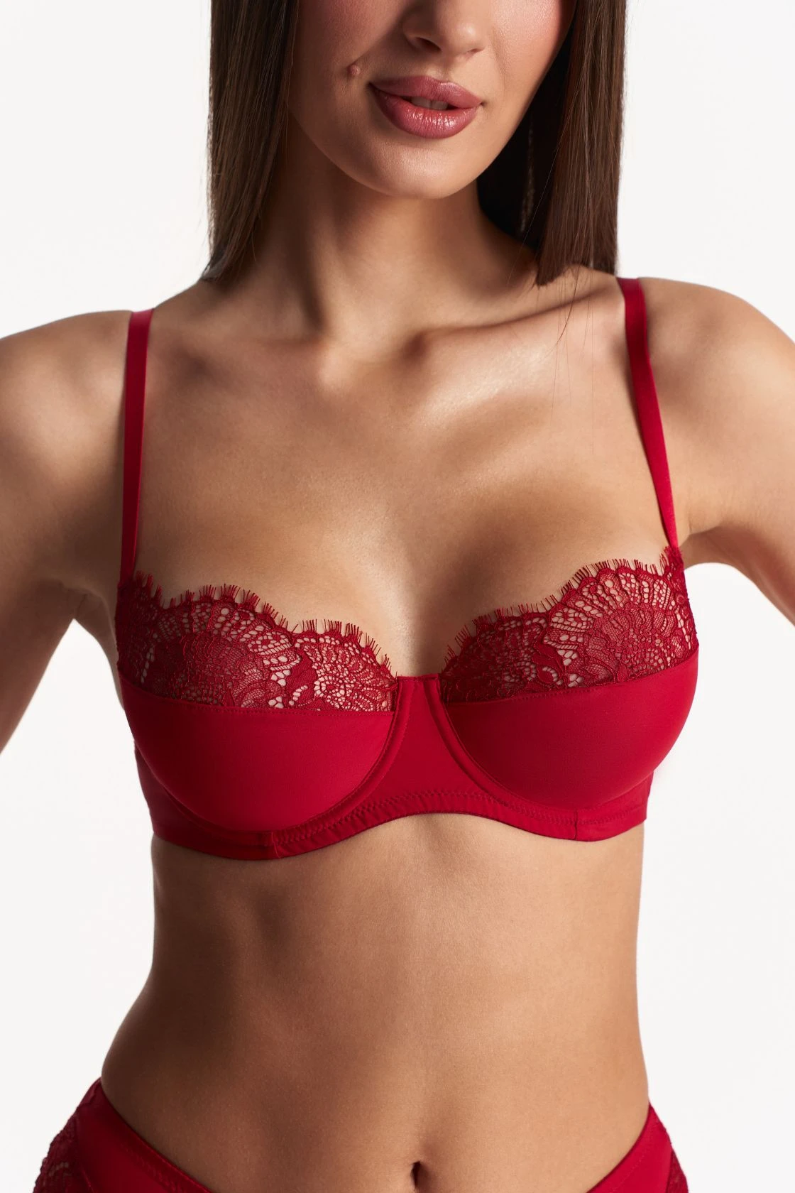 Бюстгальтер из эластиченого полотна с кружевом eyelash-эффектом (реснички). Популярная модель в новом цвете. Бюстгальтер в эффектном винном цвете подчеркнет красоту и индивидуальность.