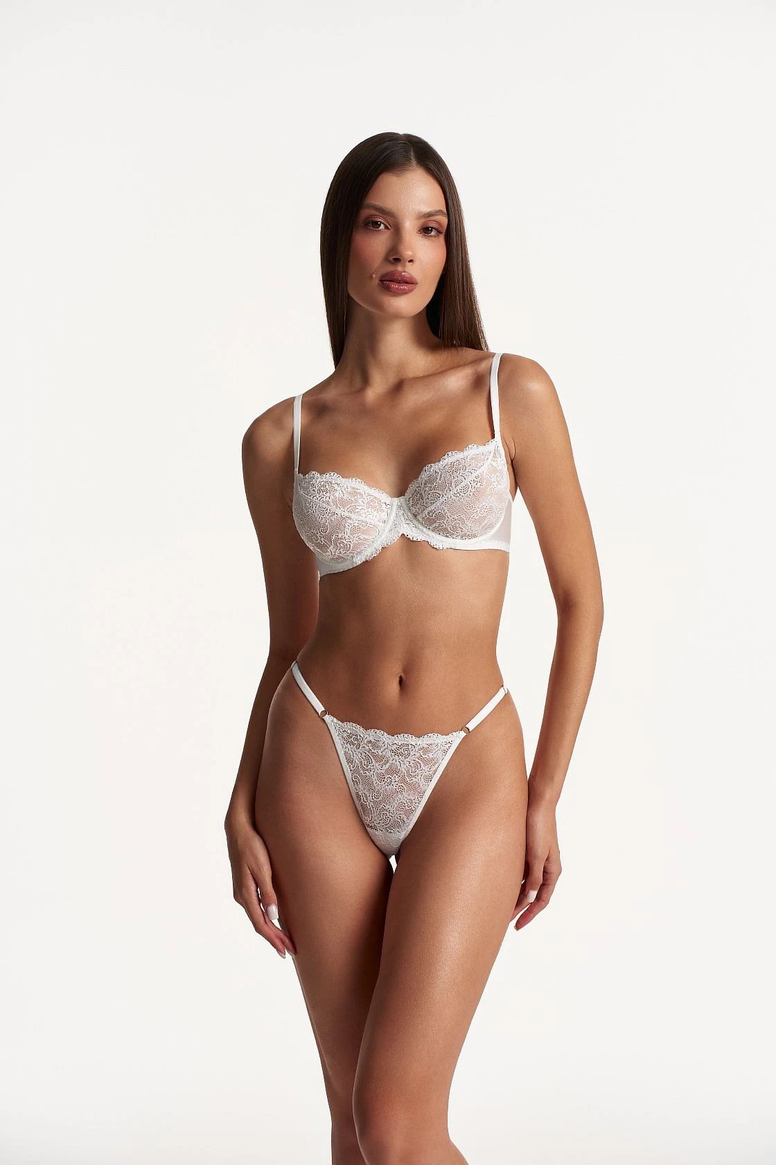 Соблазнительные стринги из кружева с регулировкой на боковых деталях для максимально комфортной посадки.